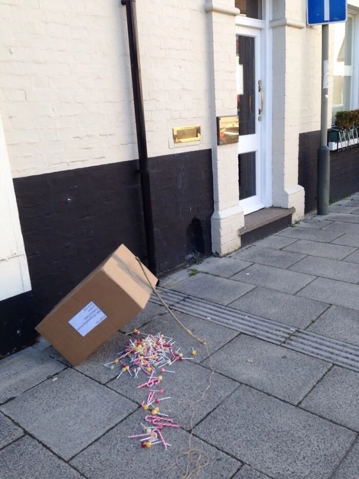 5. Инсталляция рядом со стоматологической клиникой. «Угощайтесь, а потом сразу к нам»