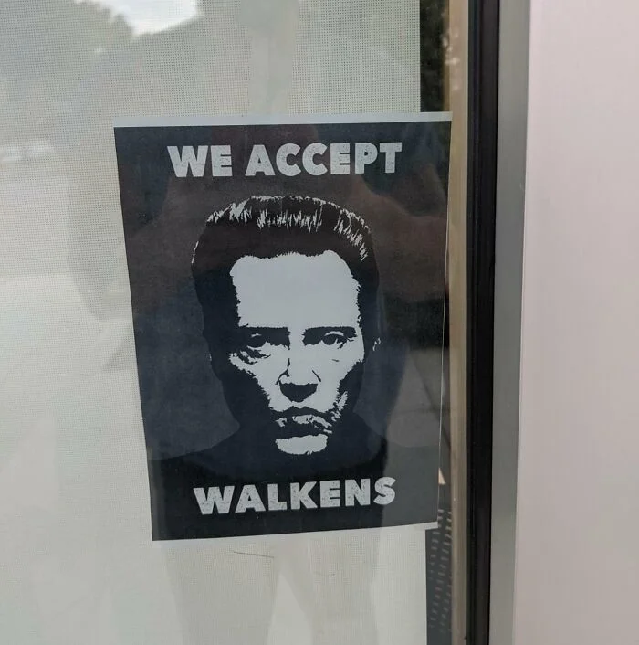 13. Игра слов: walkens = walk-ins. «Мы принимаем без предварительной записи». Кристофер Уокен одобряет
