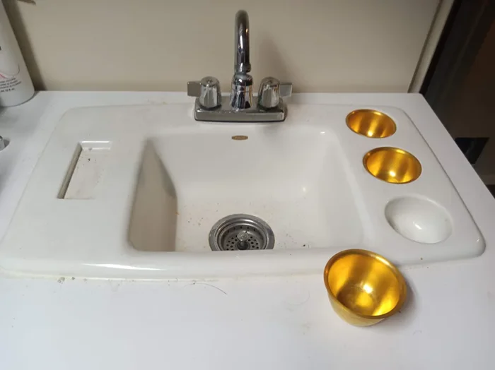 Это барная раковина. В миски кладутся украшения для коктейлей, типа вишенки или кусочек лимона. Слева выемка для разделочной доски.