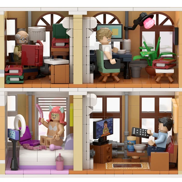 Концепт сделан в виде многоквартирного дома, в котором проживают стереотипные петербуржцы с обязательной кофейней на первом этаже. Особенно пользователей в комментариях порадовала фигурка девушки в купальнике с продолговатым предметом в руках.