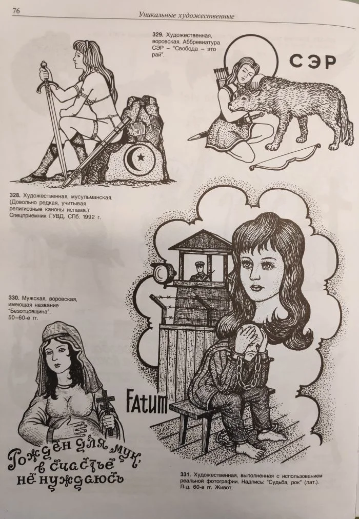 Книга с татуировками заключённых имела ещё и практический характер. Она нужна была для служебного пользования, потому что в воровском мире все тату говорящие.