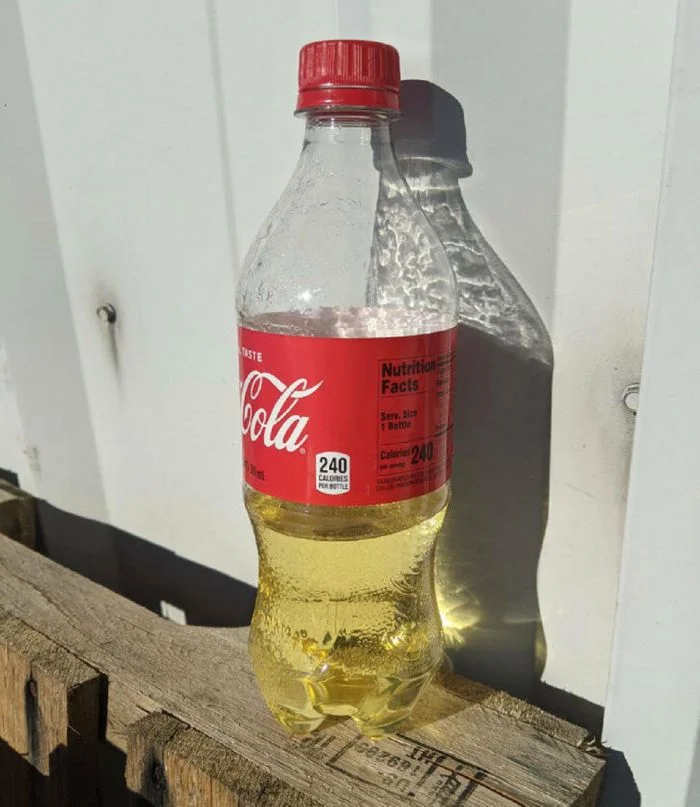 14. «Я забыл кока-колу на солнце на месяц. Смотрите, что с ней стало»