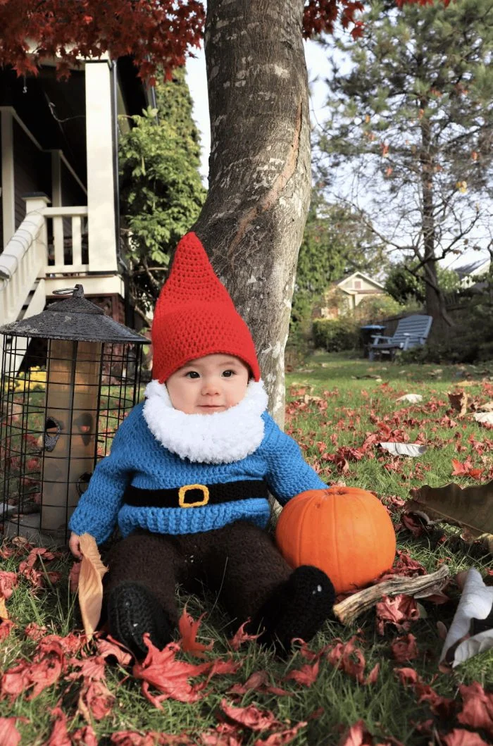 3. "Я связала для дочери первый костюм на Хэллоуин. Представляю вам малыша-гнома"