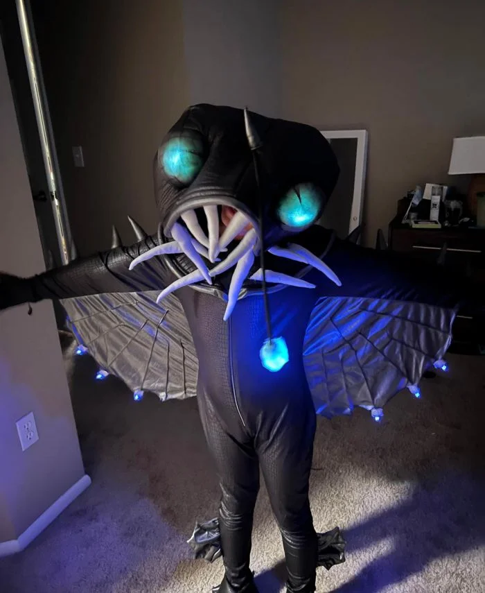 19. "Мой восьмилетний сын захотел стать удильщиком на Хэллоуин, но только если я сделаю костюм светящимся"