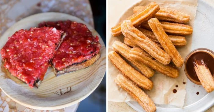 Испанцы обожают хлеб с помидором по-каталонски — это традиционный завтрак испанских пастухов, который был известен ещё в далёком прошлом. Ещё одно блюдо, пользующееся популярностью среди местных жителей — чурос. Это печенье с корицей из слоеного теста, которое выпекается в форме палочек. Подаётся с горячим шоколадом.