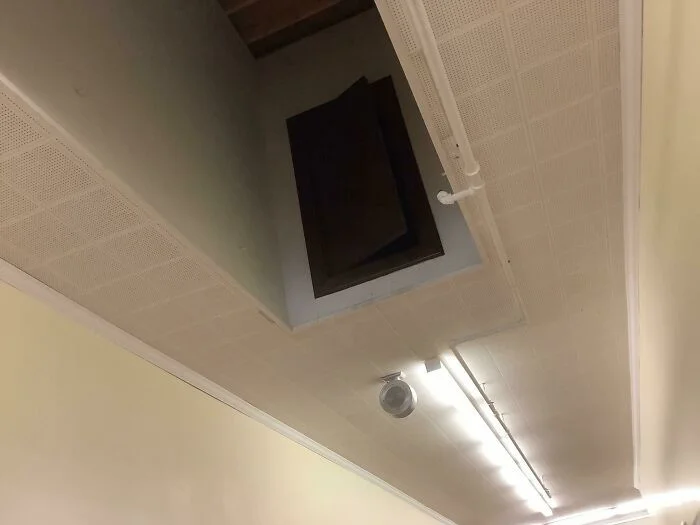 5. "В нише на потолке моей новой квартиры есть эта дверь. Агент по недвижимости не знает, для чего она"