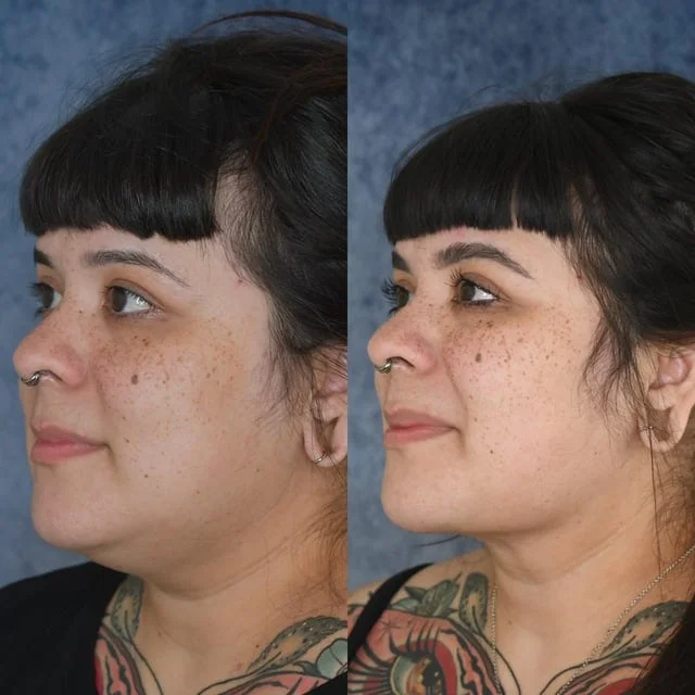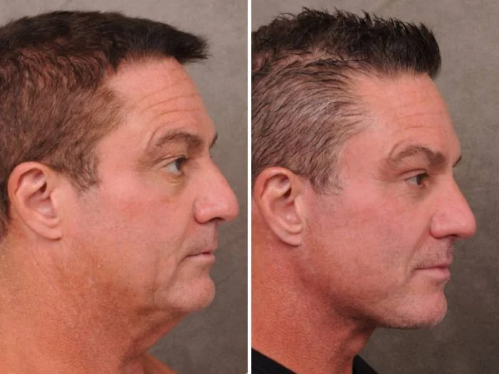 До и после ринопластики, имплантации подбородка и удаления жира со щёк