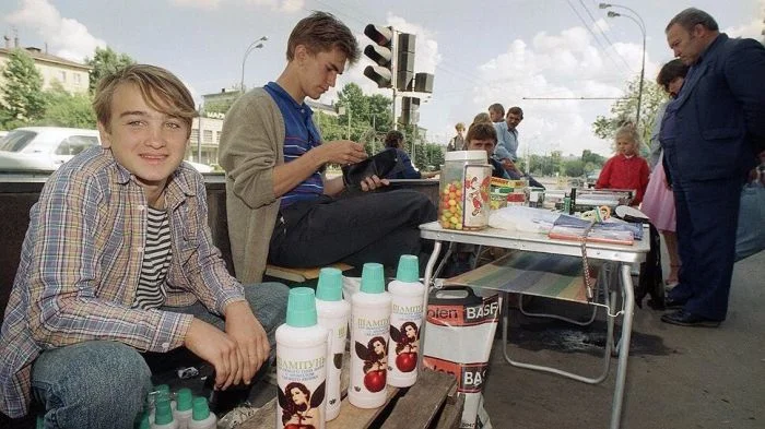 22 января Ельцин подписал указ о "Свободе торговле", легализовав торговцев-частных предпринимателей. Улицы заполонили горожане, желавшие немного подзаработать. Из комментариев: Отвратительное время было. Чем и кто только не торговал в то время. То, что до 90-х годов надо было "достать", после стало прям-таки втюхиваться на каждом углу, а под шумок - и остальное, безумно гадкого качества.