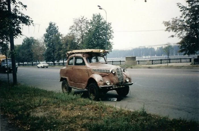 15. Очереди на АЗС - непременный атрибут того времени. На 1-й Фрунзенской улице за бензином выстроилась, наверное, сотня машин.