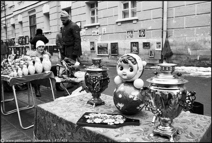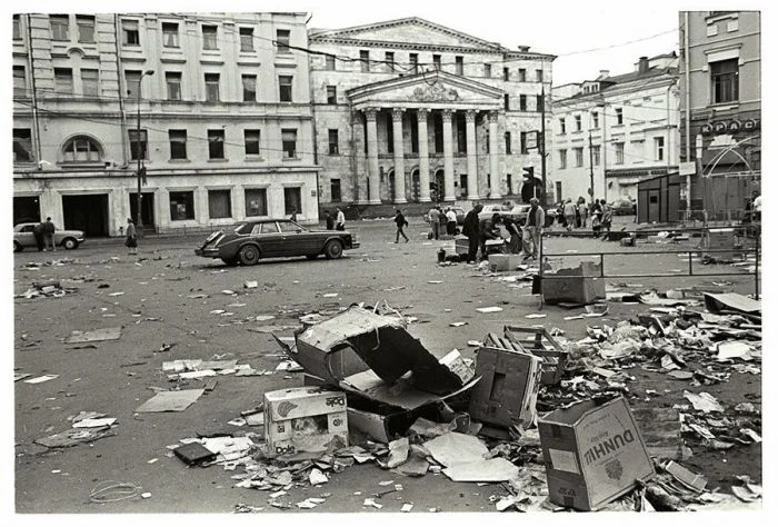 Из комментариев: В 1992 году, после двухлетнего отсутствия в Москве, я вновь оказался в столице. Я прилетел ночью и попросил водителя провести меня через центр. Мы выехали на площадь Дзержинского и у меня заныло в груди! Перед глазами встала картина достойная Босха. Апокалипсис! По площади, разносимые ветром, кружились обрывки бумаги, страницы газет, обёртки от мороженого и пустые пачки от сигарет! Ветер был такой силы, что созавал мини смерчи и в их потоках кружились в диком танце картонные коробки! Мы поехали через площадь и вмиг оказались участниками этого движения. К лобовому стеклу потокоми ветра были прижаты обрывки бумаги, а по крыше застучал падающий картон. Посреди всего этого хаоса стоял каменный Дзержинский и он единственный не принимал участие в этой вакханалии. Мне стало очень обидно за мой город... "Что это, спросил я у водителя и он ответил, - торгуем поманеньку..."