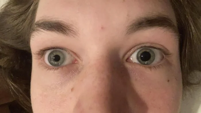 «У моего брата заболевание, при котором радужная оболочка попадает в зрачок (это не влияет на его зрение)».