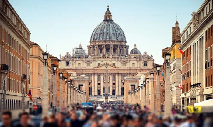 Собор Святого Петра в Ватикане величественно возвышается над городом.