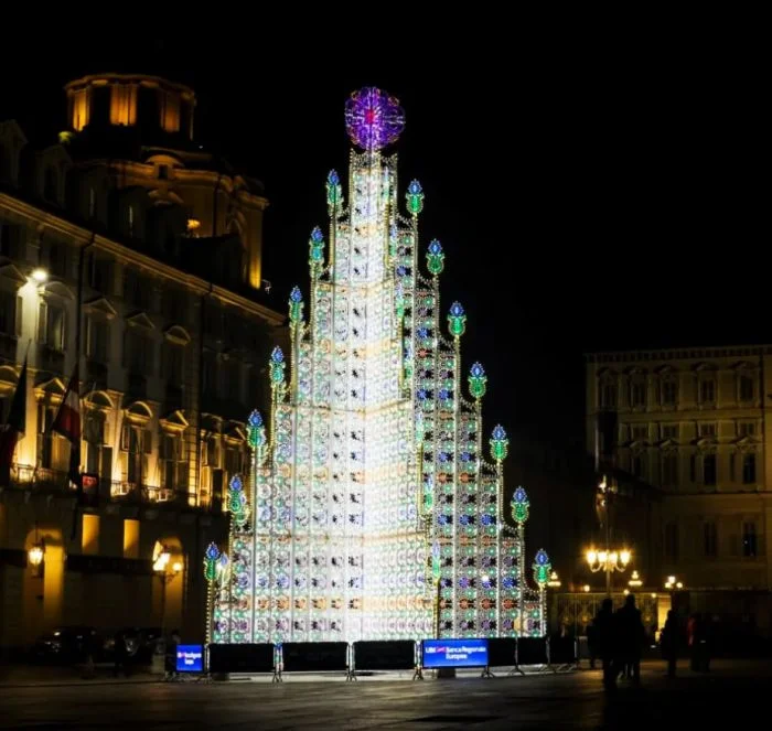 Эта необычная ёлка сделана из специальных трубок, изготовленных из муранского стекла. Подобные новогодние украшения популярны во многих частях Италии. Их довольно часто можно встретить на улицах во время зимних праздников.