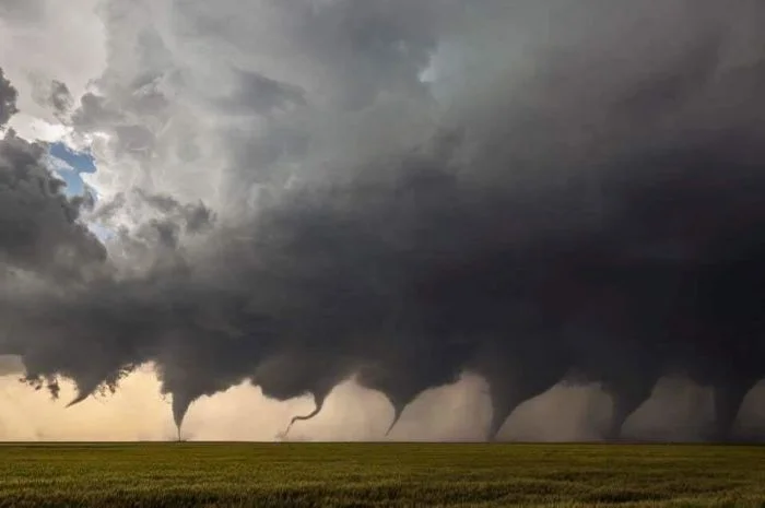 Следующее фото представляет эволюцию торнадо - впечатляющее шоу природы.