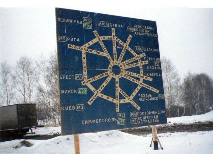 28. Потрясающий укзатель на 84-м километре МКАД. Попробуй эту схему прочитать на скорости, дорогой водитель!