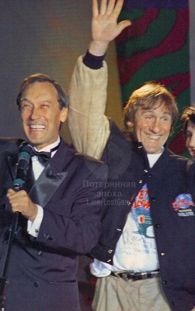 4. Олег Янковский и Жерар Депардьё на открытии ресторана "Планета Голливуд", Москва 1996 год
