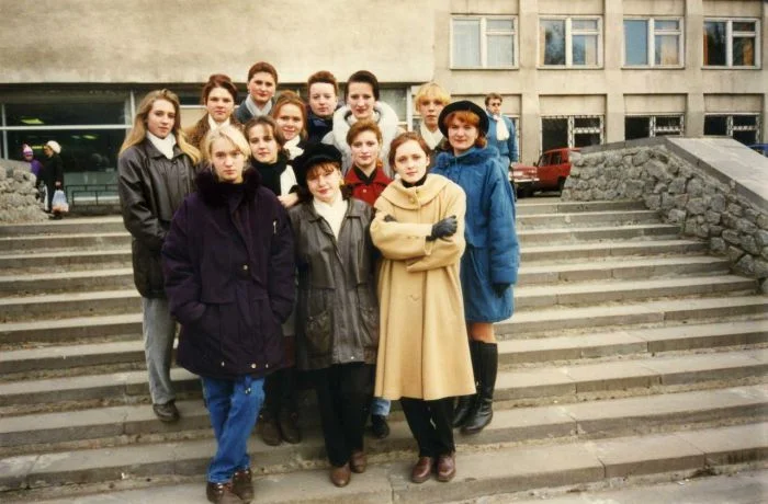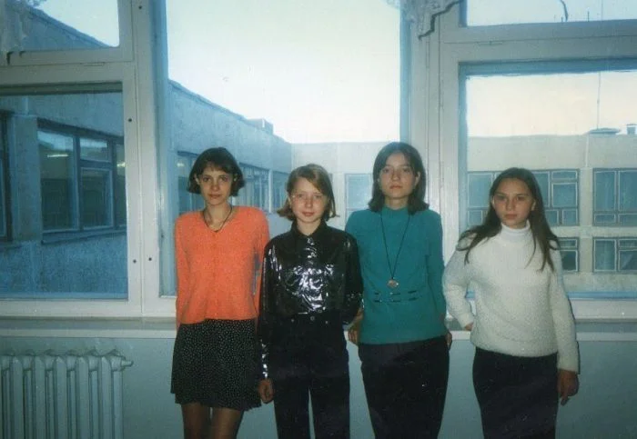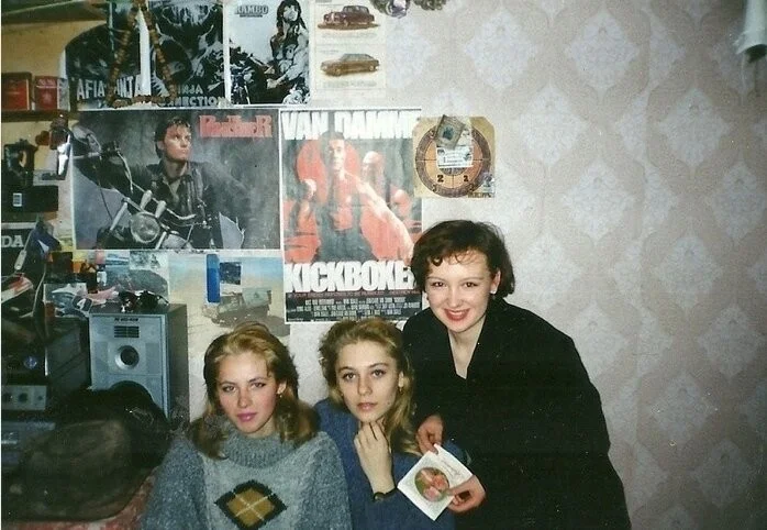 27. Подружки на фоне плакатов с героями боевиков, 1996 год.