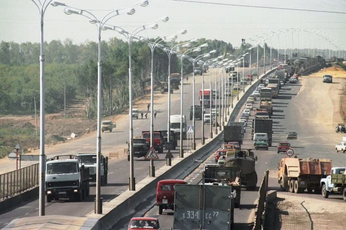 12. МКАД тогда был преимущественно трёхполосным и эти три полосы не справлялись с выросшим транспортным потоком совершенно.