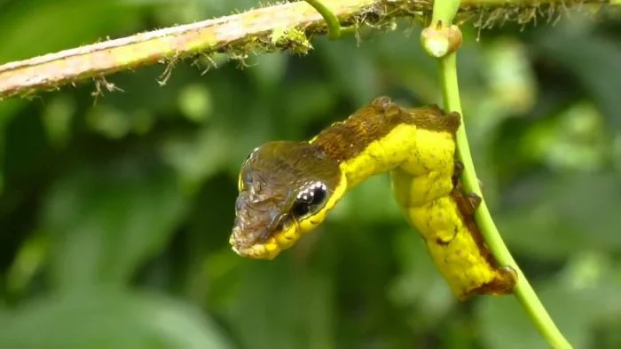 Эта гусеница с головой змеи имеет особый вид, предназначенный для отпугивания хищников.