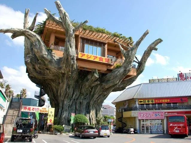 Ресторан "Дом на дереве" находится на острове Окинава в Японии.