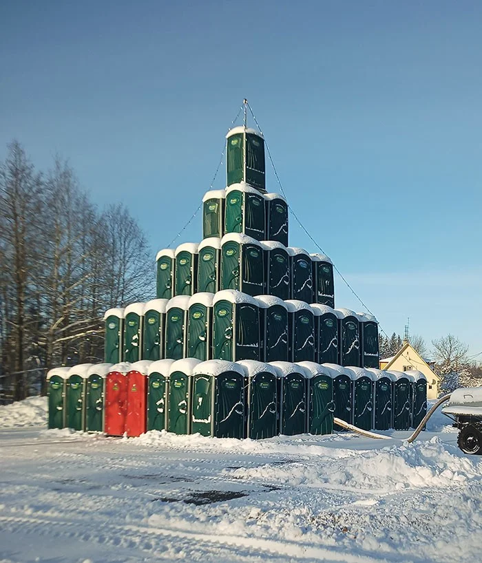 «Рождественская елка, изготовленная из переносных туалетов в Выру, Эстония».