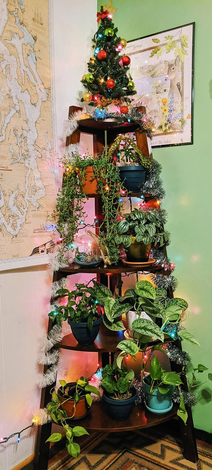 «Наша елка. Мы не могли позволить себе рождественские украшения, поэтому использовали вещи, которые у нас уже были».