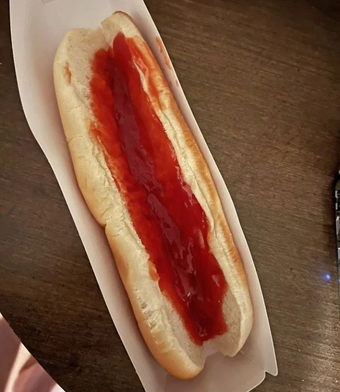 Я просил хот-дог с кетчупом, и хотя они вроде как сделали всё правильно, визуально он выглядит не самым аппетитным образом.
