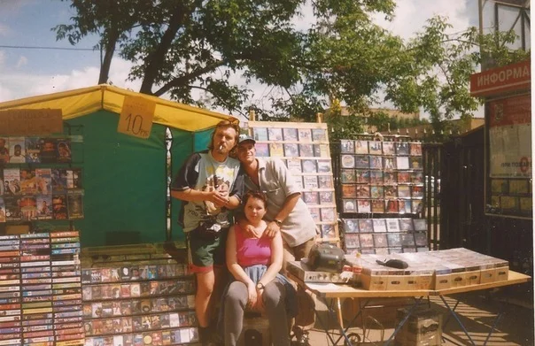 Продавцы видеокассет и музыкальной продукции. Россия, конец 1990-х.