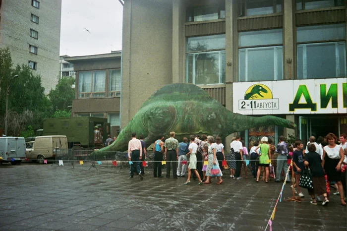Люди пришли на выставку динозавров в Саратове, 1990-е годы.