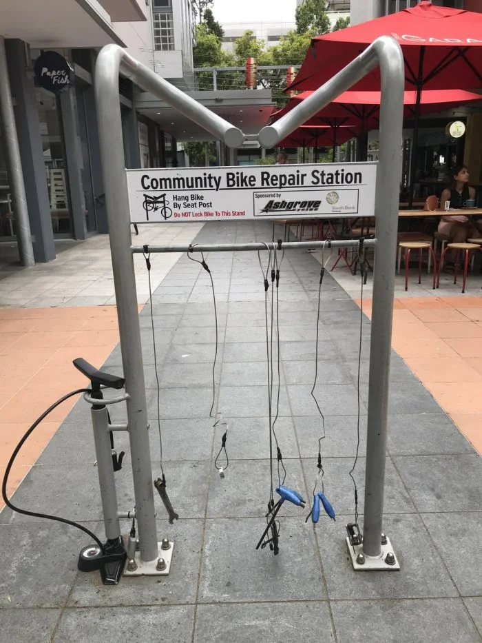 В Брисбене существуют общественные станции по ремонту велосипедов.