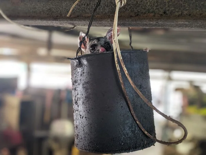 Опоссумы встречаются повсюду, даже в автомобильных мастерских, где они охлаждаются.