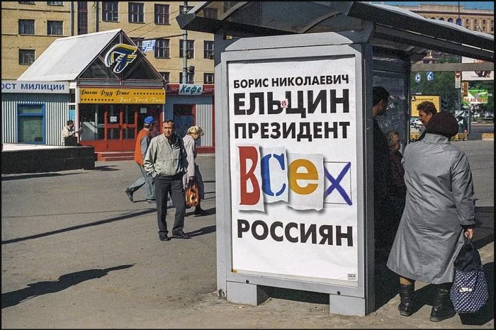 15. Предвыборная агитация от Ельцина на остановках общественного транспорта.