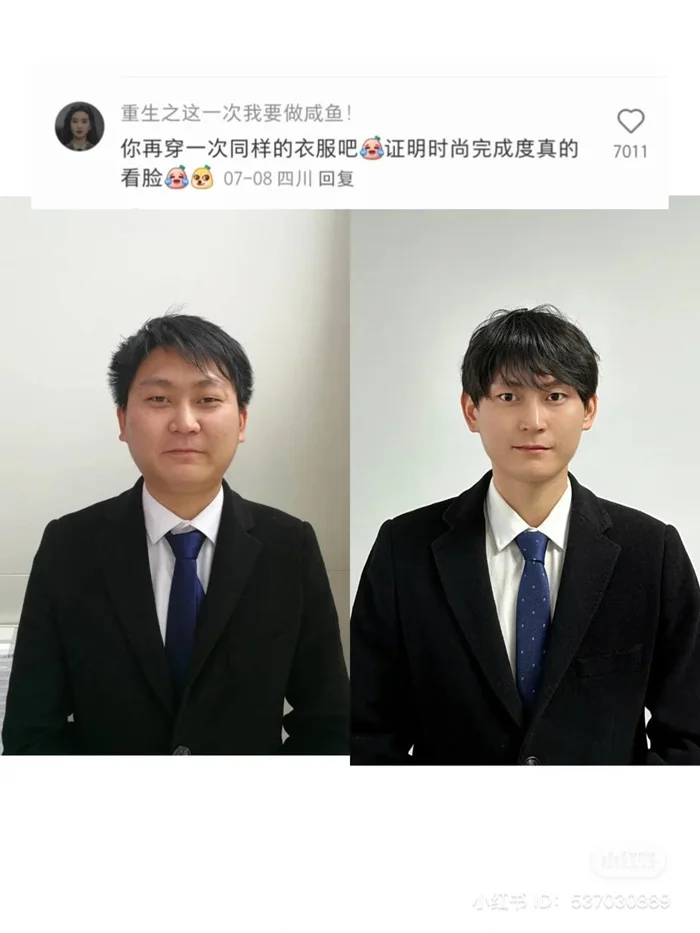 Не все комментаторы были злыднями, некоторые дали ему хорошие советы. Одни из первых были сменить прическу и очки. 小艾同学 не пошел резать себе вены или лезть в петлю, а последовал этим советам.