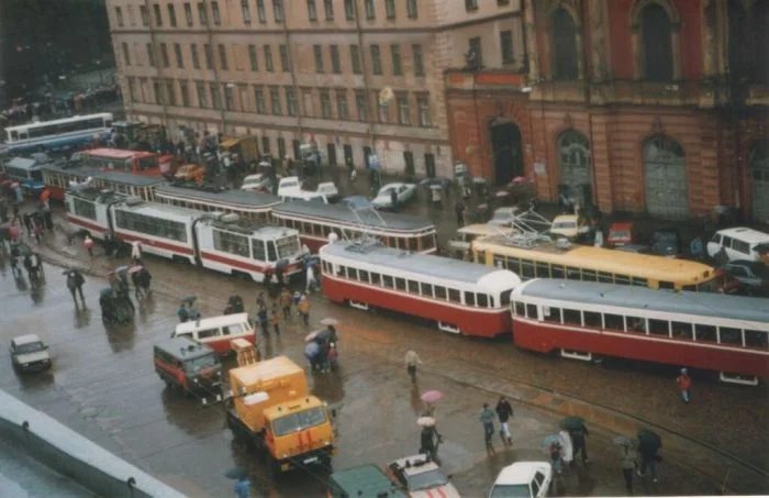 Парад-то состоялся, но вот трамвайное движение здесь не доживёт даже до следующего года. 1997 год был последним, когда на трамвай можно было сесть около Спаса-на-Крови.