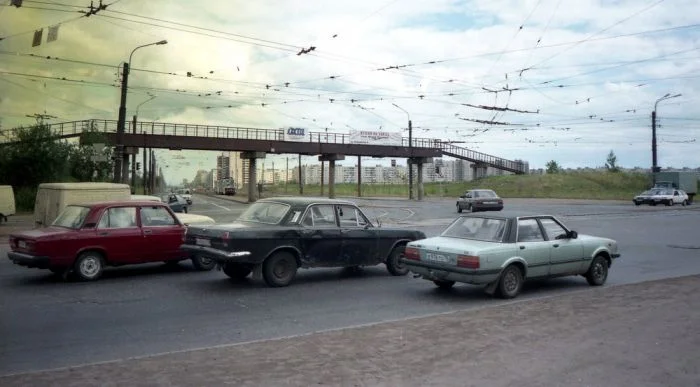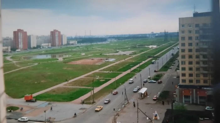 На фото - участок между проспектом Кузнецова и улицей Доблести. Кстати, в левом углу кадра можно разглядеть здание супермаркета "Лента". Это была третья по счёту "Лента" в Петербурге ,до этого открылись два первых супермаркета на Замшиной улице и Тихорецком проспекте.