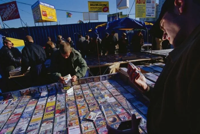 38. Классический дисковый развал на московском рынке, 1999 год