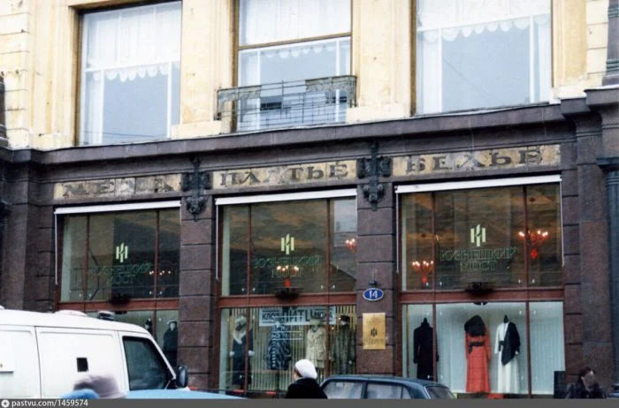 9. На улице Кузнецкий мост на доме номер 14 пробиваются вывески бывшего торгового дома Русско-Американских мехов А.М. Михайлова.