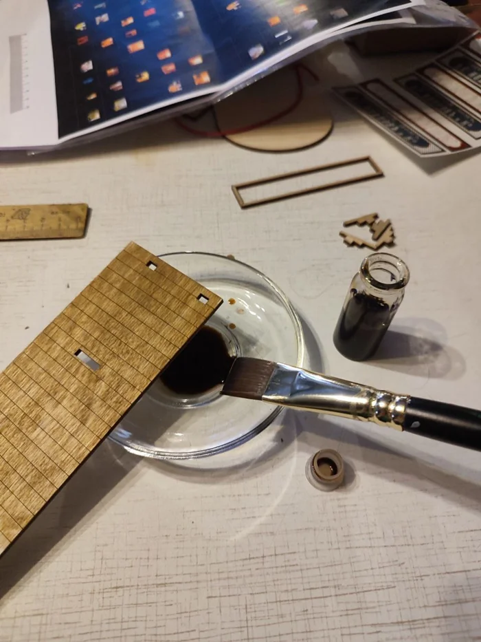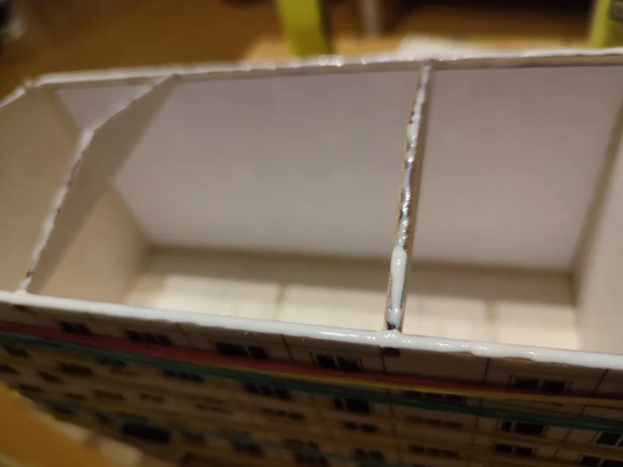 Наносим клей и клеим корпус. Крыша просто вставлена для удержания геометрии. На помощь приходят вездесущие канцелярские резинки.