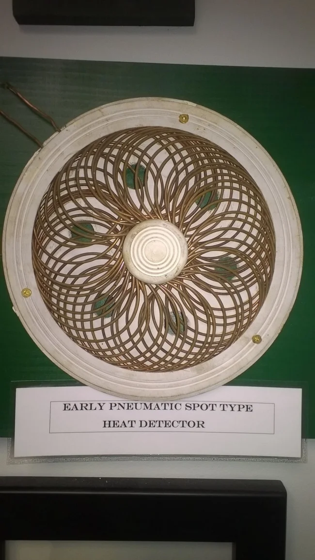 Часть старой противопожарной системы. Логика работы - при нагревании газ внутри трубки расширялся и нажимал на кнопку сигнала тревоги, оповещая жильцов.