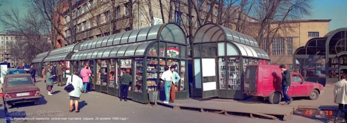 24. Ларьки и бойкая торговля в Крестьянском переулке, неподалёку от станции метро "Горьковская".