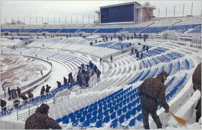 8. Снежное 14 апреля. Стадион "Динамо" готовится принять полуфинал Кубка УЕФА между "Спартаком" и "Интером".