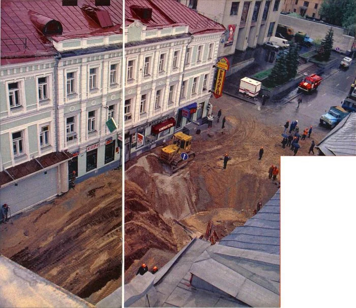 22. 14 мая на Большой Дмитровке в считанные минуты образовалась громадная яма площадью 500 м2 и глубиной около 30 метров.