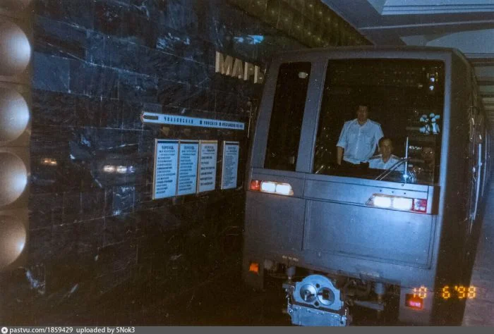 24. В 1998 году в московском метро началась эксплуатация новых поездов "Яуза". Самый первый поезд 81-720/721«Яуза» на станции метро «Марьино».
