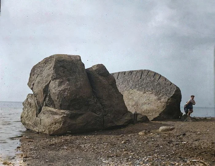 Валун на берегу Финского залива. Остатки постамента медного всадника, с этого места глыбу при Екатерине II грузили на баржи.