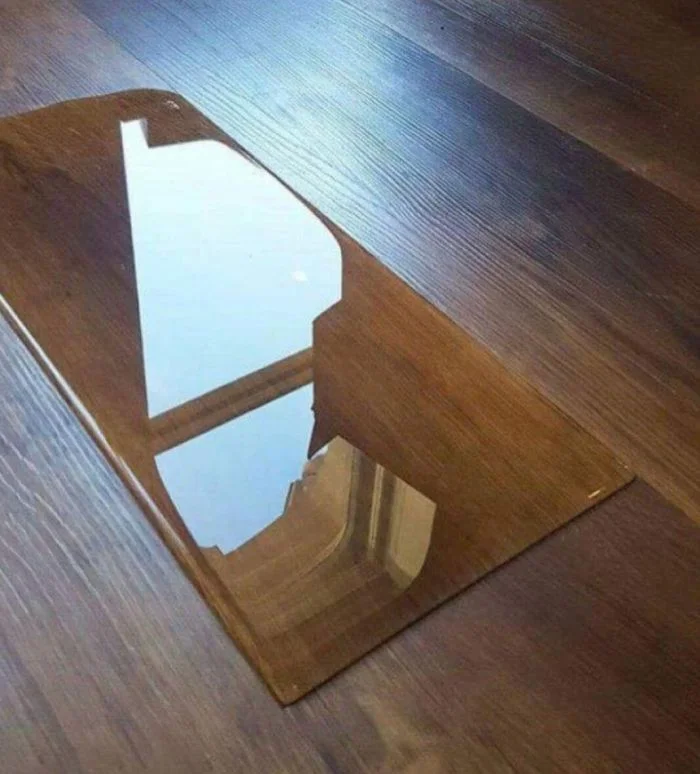 Пролитая вода приняла форму идеального прямоугольника