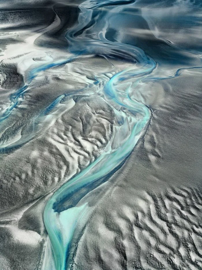 Во время отливов некоторые части отмелей выглядят инопланетно: видны разные оттенки, рельефы, извилистые водные дорожки, что формирует динамичный ландшафт. Это - ещё одно свидетельство необузданной мощи и красоты природы.