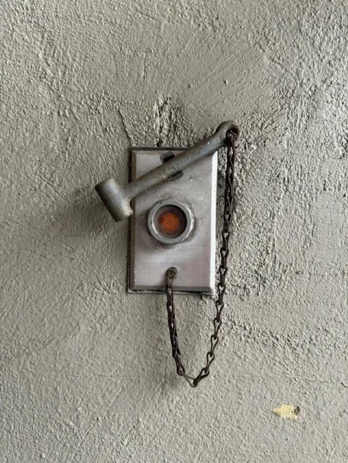 Крошечный молоточек и кнопка в старом жилом доме... неизвестно зачем.