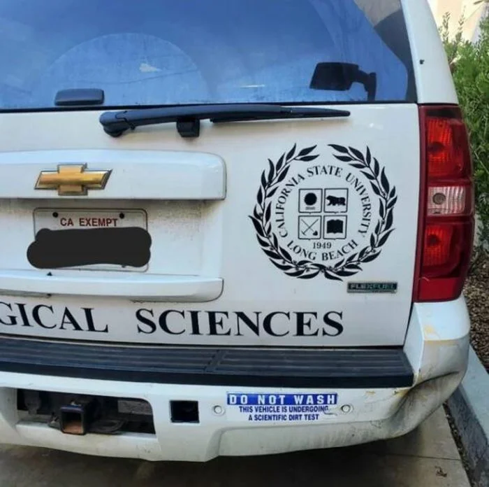 "Не мыть. Машина проходит научные испытания на загрязнение."