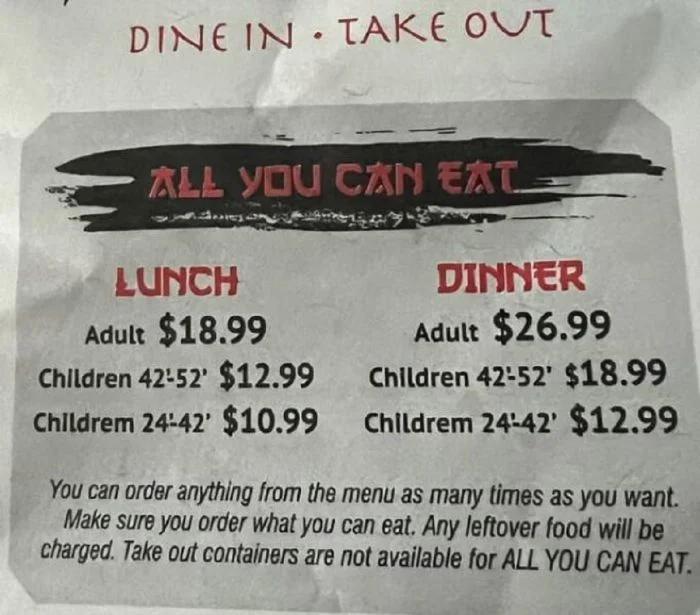 В этом ресторане с детей берут деньги в зависимости от роста, а не возраста.