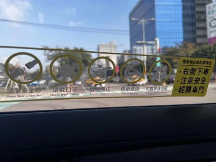 "Наклейка гласит, что водитель такси не женат и открыт для флирта."